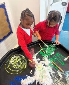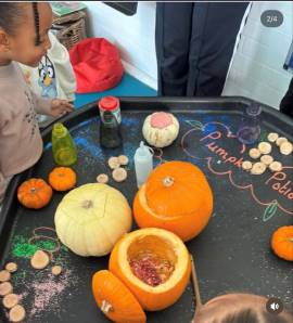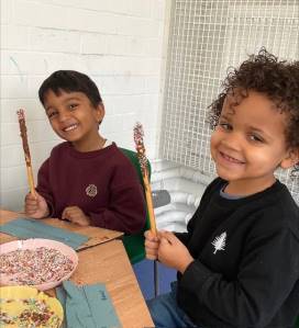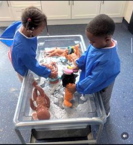 In Nursery , we have organised the school day to maximise periods of uninterrupted play, allowing children to become deeply involved in their own learning. We see learning as a collaborative journey with both adults and children working together to explore and discover new skills. When playing, our adults inspire them to reflect, make connections, be ambitious and achieve their next steps.